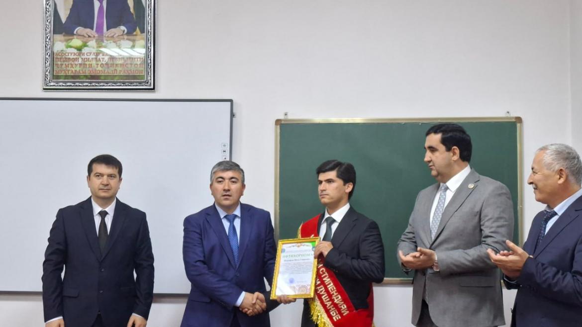 Дар анҷоми чорабинӣ магистранти курси дуюми ихтисоси информатика Шарифов Мусо Умарович — барандаи стипендияи Раиси шаҳри Душанбе барои муҳаққиқони ҷавон дар соли таҳсили 2025–2026 бо Ифтихорнома ва туҳфаҳо қадрдонӣ гардид.