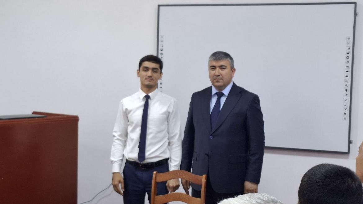 Дар фарҷоми баромад Раҳимзода А.О. ғолиби даври сеюми озмуни ҷумҳуриявии “Илм – фурӯғи маърифат” миёни донишҷӯёни шаҳри Душанбе аз рӯйи номинатсияи математика Ҳусейнов Шоҳрухро бо дастовард табрик намуда, ӯро бо мукофот ҳавасманд гардонид.