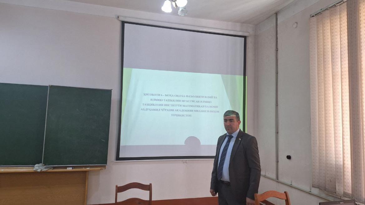 Санаи 3-юми июли соли 2024 дар Институти математикаи ба номи А.Ҷӯраеви АМИТ ҷаласаи васеи Шурои олимони институт баргузор гардид. Маҷлисро директори Институти математикаи ба номи А.Ҷӯраеви АМИТ н.и.ф.м. Раҳимзода А.О. оғоз намуда, бори дигар ҳамаро бо Ваҳдати миллӣ муборак бод намуда, баъд аз он ҳисоботи 6-моҳаи фаъолияти илмӣ ва илмию ташкилии муассисаи илмию таҳқиқотии институти математикаи ба номи А.Ҷӯраеви АМИТ баррасӣ намуданд.